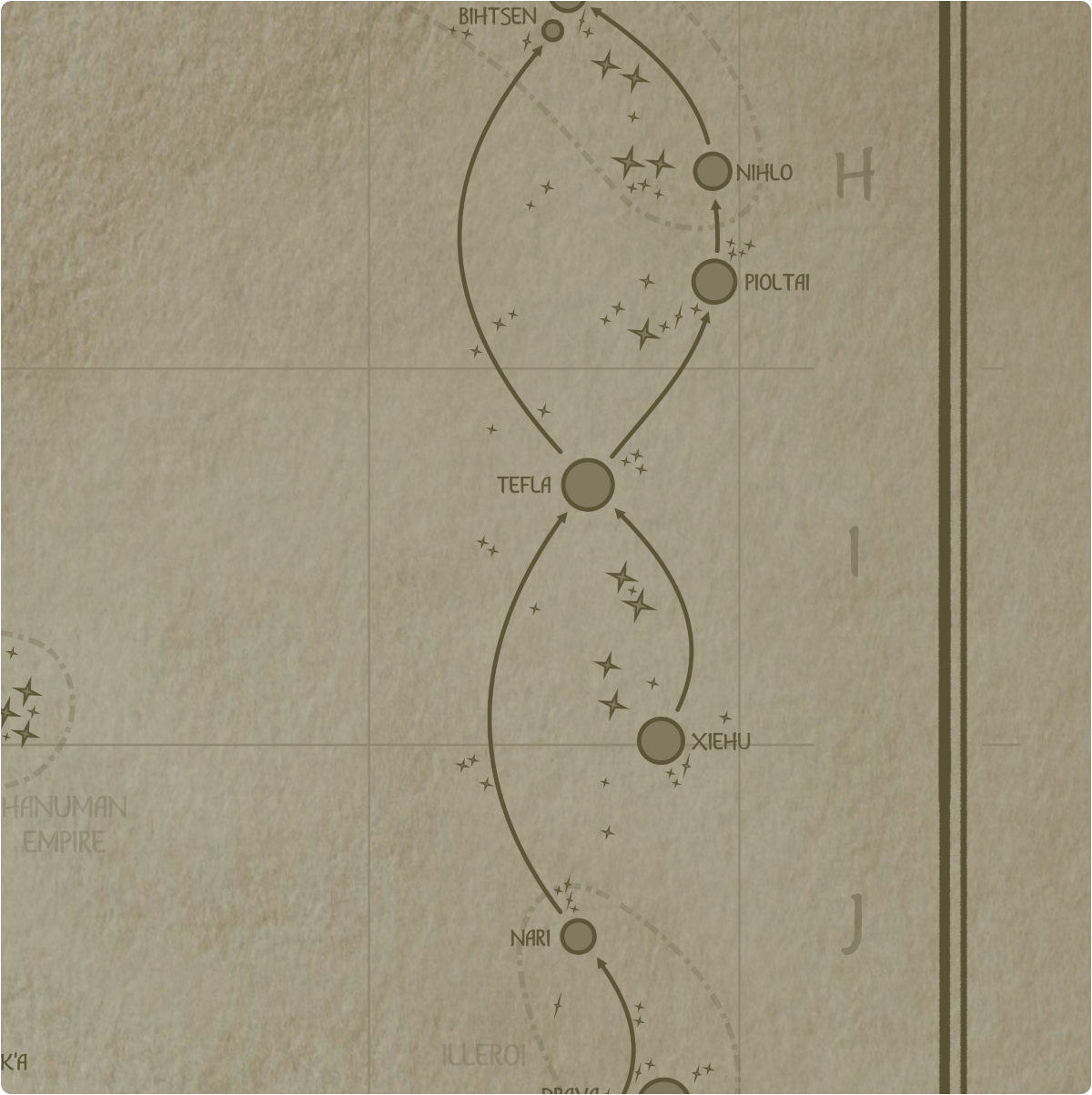 Planetary Star Systems: Tefla, Xiehu Orphan Stars: 4 Dwarf Stars: 11 Empire: None Adjacent Sectors: Sector I16, Sector h17, Sector j17