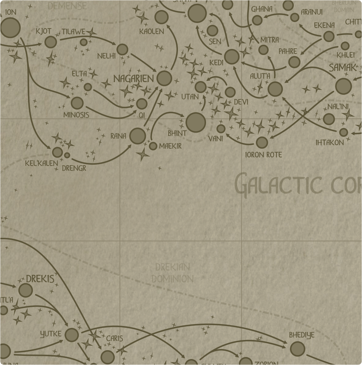 Planetary Star Systems: Bhint, Maekir, Rana, Vani Orphan Stars: 2 Dwarf Stars: 10 Empire: Nagari demense Adjacent Sectors: Sector k7, Sector k9, Sector j8, Sector l8