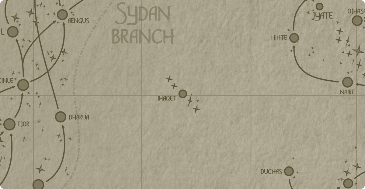 A paper style map showing Ihaqet's location, far away from neighboring stars