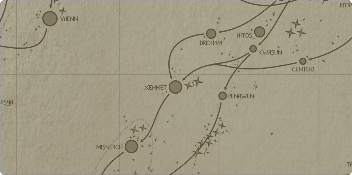 A paper map of the region surrounding the Xehmet star system