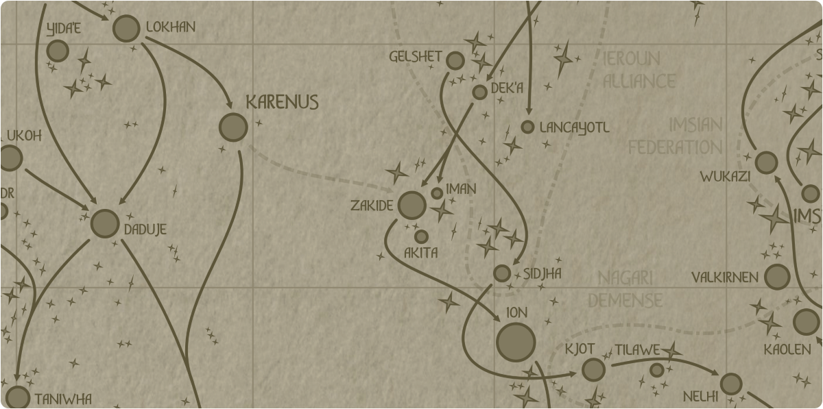 Neighboring Stars: Akita, Dek'a, Gelshet, Iman, Ion
