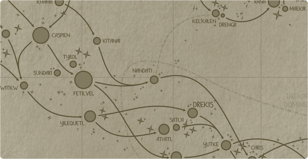 Neighboring Stars: Caris, Drekis, Kel'kalen, Fetilvel, Kitanai, Yutke