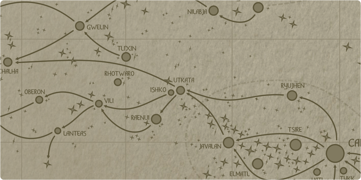 Neighboring Stars: Chalha, Raenui, Tli'xin, Utkata, Vili