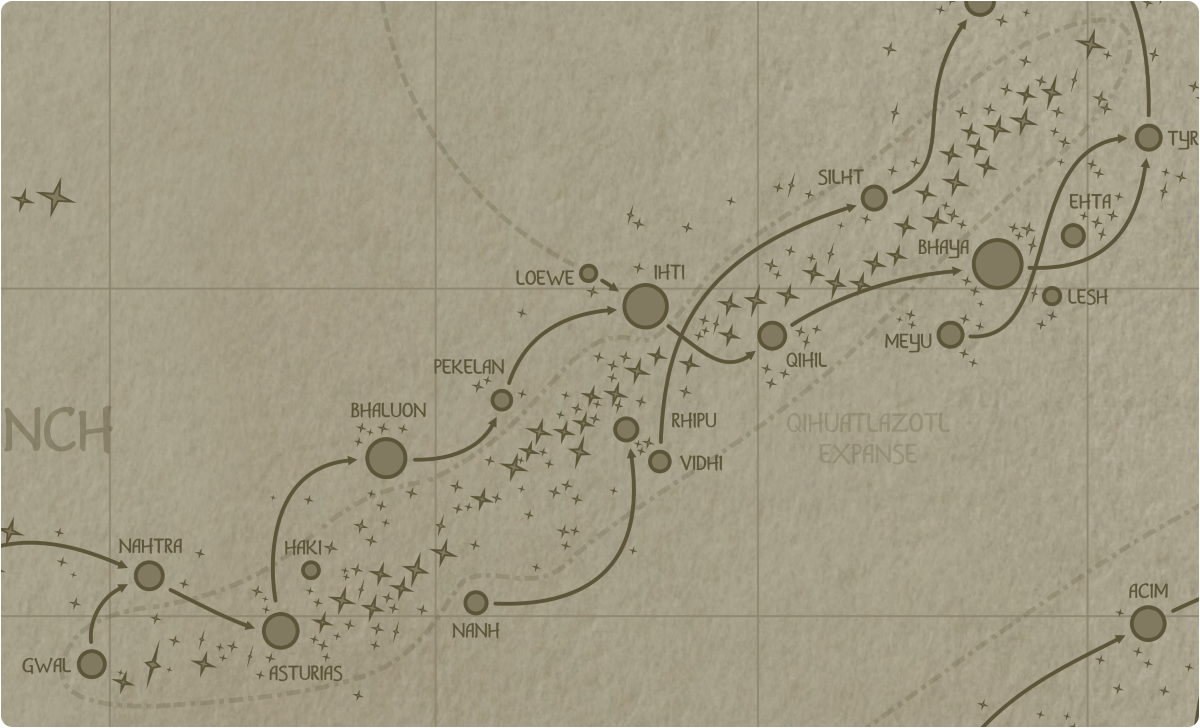 A paper map outlining the boundaries of the Qihuatlazotl Expanse