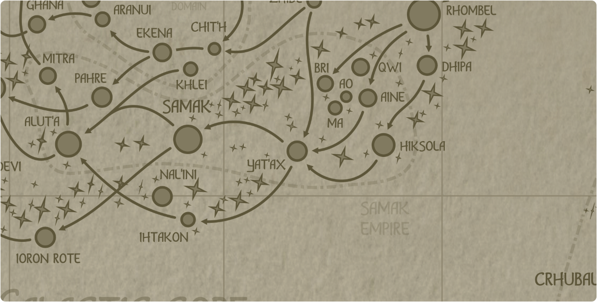 A paper map of the region surrounding the Yat'ax star system