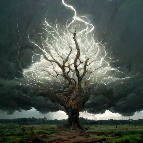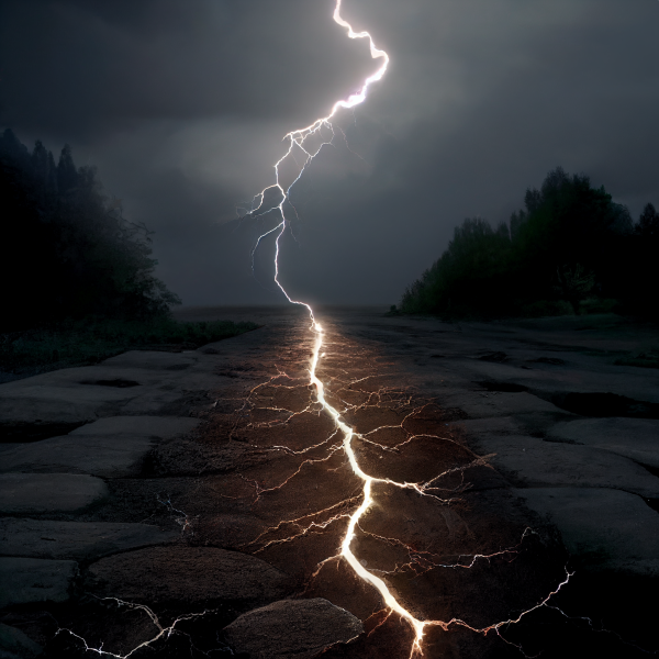a bolt of lightning hits the ground and travels toward the viewer through the earth