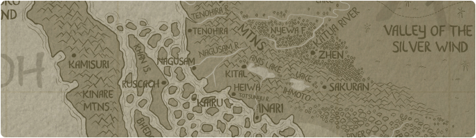 Kital is a small post town in the Faulan mountains, serving as a waystation for the caravans travelling over the mountain pass towards Yuanen. The city is built on the westernmost shores of Anis lake, giving the little city amazing views across the lake. The city has a single large inn which provides for all the needs of the travelers. The city square boasts an elaborate shrine, an archway made of solid jade, under which many caravans intentionally pass to bring good luck on their journey