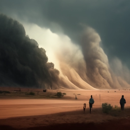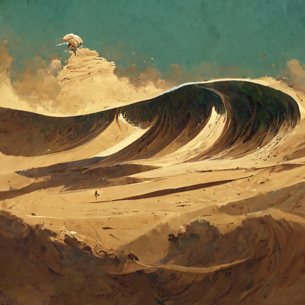 monks a monk raises slabs out of the desert floor as the sky twists and shifts in the shape of a tree