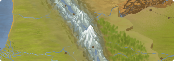 Stretching to the sky, Rhau Peak stands taller than any other mountain in Sliabh, or for that matter, the planet. It is home to the primate city of Athair, and the center of the Carragh culture. Though the Carragh of the mountains spend much of their lives below ground, they make their way to the peak at least once in their life