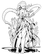 The Kolraka are a solitary species with cephalapod features. They have four arms and four legs lending them agility and flexibility. Two of their arms have humanoid hands with long slender fingers, while the other two are tentacles lined on their underside with suction cups. The Kolraka are fiercely self-sufficient and solitary creatures. They are the most intelligent species in the galaxy, but rarely employ their talents for the benefit of others