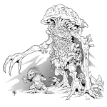 The Manitari are a unique fungal species that recently acheived sentience and subsequently rationality of their own accord. This makes them one of the few species not created by a Sura. They have earthen bodies, stone skeletons, and a fungal nervous system which manipulates its earthen puppet. Their heads are formed from mushroom caps and as a result their faces are like stiff masks, lacking expression but compensated for by their complex eyes, which can convey deep emotion