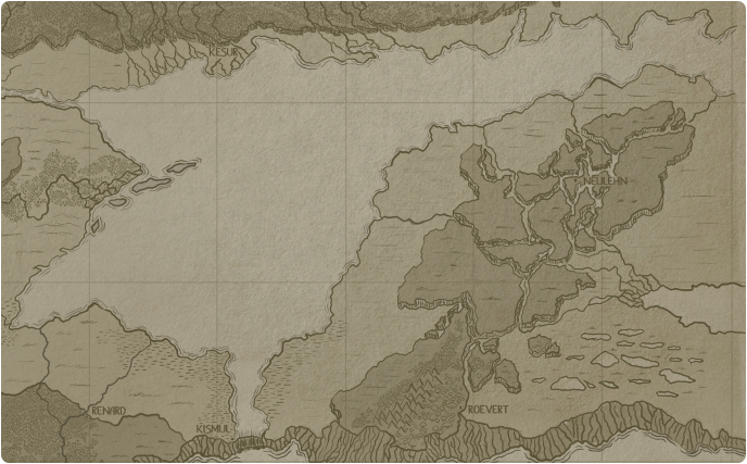 After the planet was sundered and Briste broke off of the planet to linger in its skies, the ocean drained into the rend left by the floating continent. This created three seas out of the single ocean that existed before the sundering. Tarach is the sea still remaining in the eastern continental shelf. It continuously drains into the Isheal sea, but is replenished by the planet's water cycle
