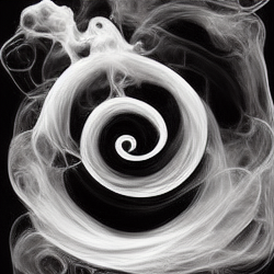 a spiraling white smoke on a black background