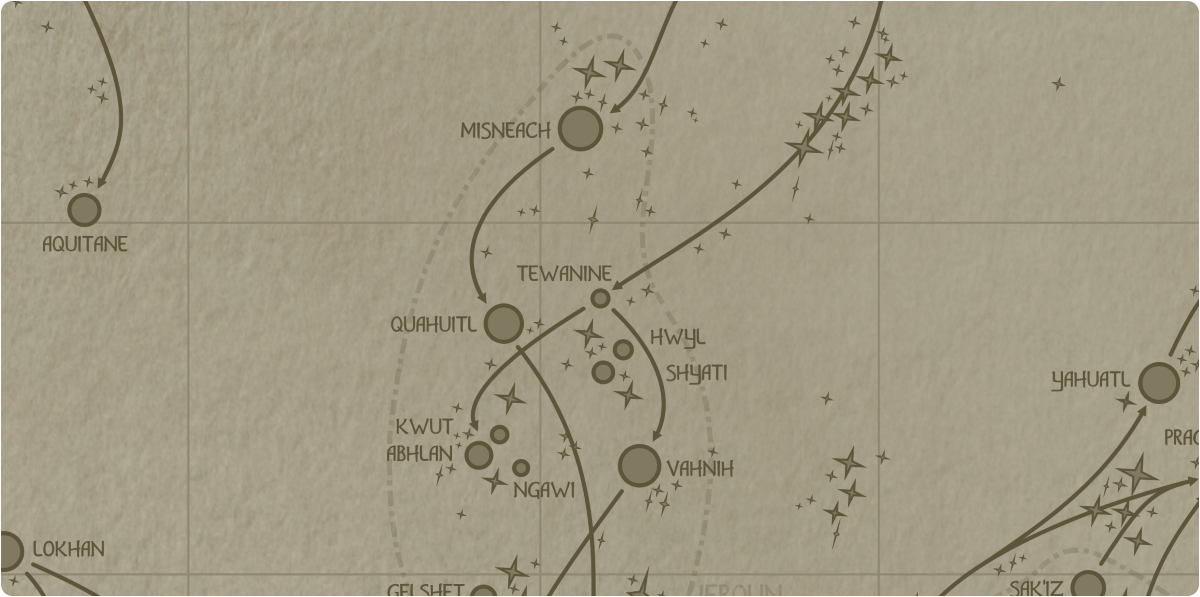 Neighboring Stars: Abhlan, Hwyl, Kwut, Quahuitl, Penawen, Shyati, Vahnih