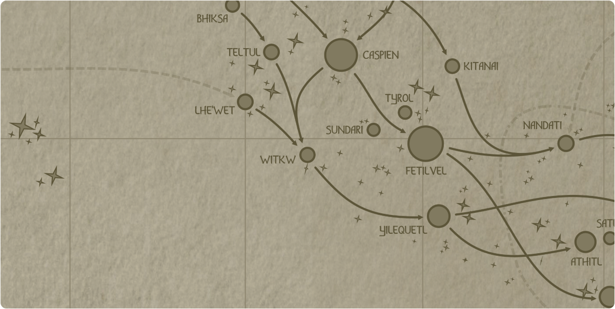 Neighboring Stars: Caspien, Lhe'wet, Sundari, Teltul, Yilequetl