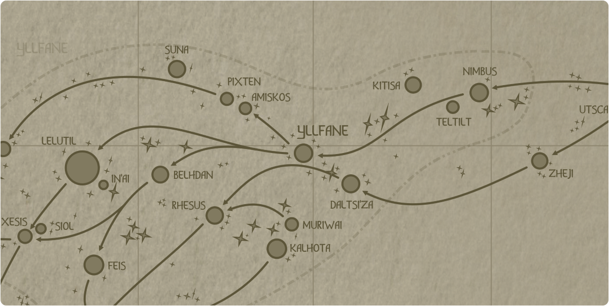 Neighboring Stars: Amiskos, Belhdan, Daltsi'za, Lelutil, Nimbus, Rhesus, Teltilt