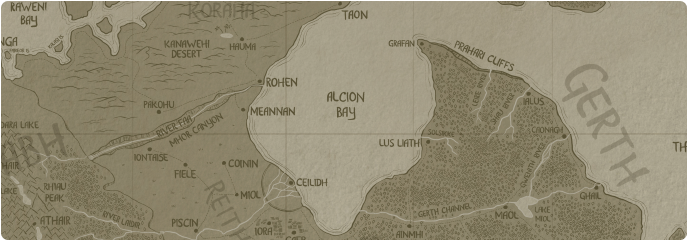 Related Geography: Eilc sea, Eorna plains, Gerth channel, Kanawehi desert, River faa, River laidir, Solsikke river
