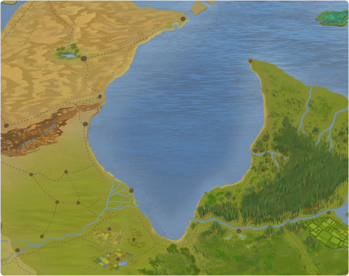 Large and central bay and home to several cities, this bay is pivotal in connecting trade and culture among some of Terra's largest and most influential nations