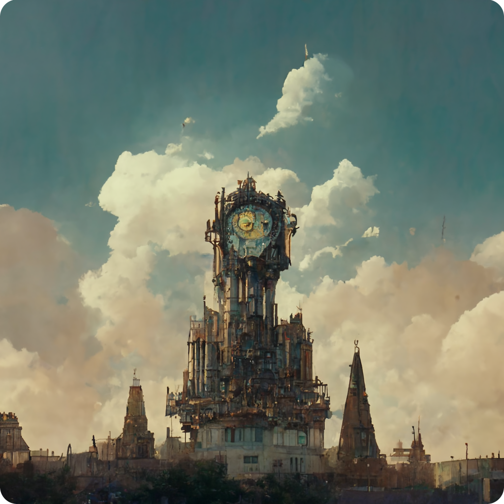 The central clocktower of Ceilidh The mechanisms of Ceilidh's infrastructure can be overwhelming to first time visitors, but after a few days in the city this disorientation fades. There is a stationary center in which the government and civic service structures reside. This center point of the city is also the highest point in the city, and the main tower in the very center is the tallest tower in the city. Around this stationary center are five rings. Each ring moves around the center, either clockwise or counter clockwise. Each ring moves in the opposite direction of each of its neighbors. Each ring is slightly higher than the next ring, the highest ring in the middle and the lowest ring on the edge. Outside the last ring is a stationary wall and, on the ocean side, the ports