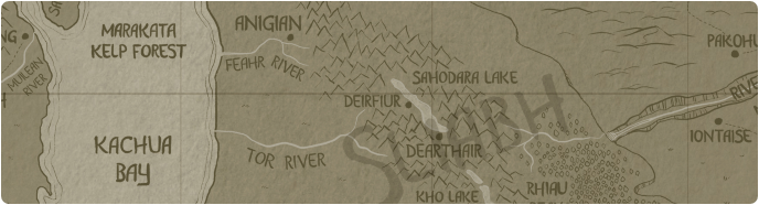 Deirfiur is one of two cities situatied below Sahodara lake, the other being Dearthair. Deirfiur was one of the first Carragh cities, founded by the Jan Anpa Carragh. These Carragh are born deep below the surface and their sprawling city reflects this. The majority of the city is almost a mile deep, and is more a collection of small villages than it is a city. Though officially open to outsiders and other Carragh, this city prefers to keep the number of visitors low. They have very little in the way of trade, which is mostly conducted with Dearthair