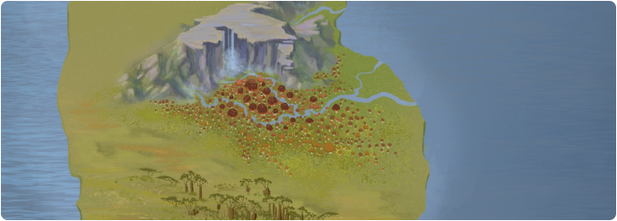 Runs from the Mehwensyll mountains, through the Nirimir mushroom forest on Mothira island, the southern isle of Inis. The waters of this river have a beautiful turquoise color, filtered as they come down from the Mehwensyll mountains. Within the Nirimir forest, the waters glow with a soft light due to tiny bio-luminescent creatures that inhabit the river. The light is turquoise or a brilliant purple, depending on the location