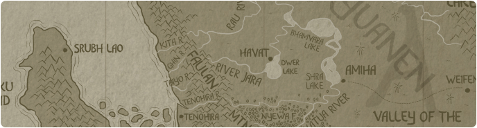 Flows from the western Faulan mountains of Yuanen, through the Dwer lake, past the city of Havat, and on to join the Katua river