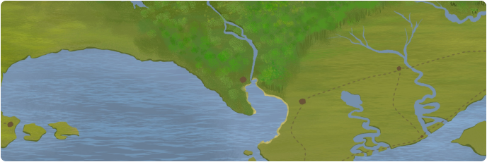 The city infrastructure of Lorb is built in the large trees and spans both sides of the river, connected by rope bridges. Even the cities ports are in the trees, as the trees grow in the shallow waters of the bay. The city was built in this way to deter attacks during terra's tumultuous history