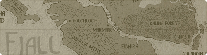 Marmair is a port city founded along the banks of the Caol passage, where the Damhsa mountains jut straight up out of the water. The city is the main point of trade for the Carragh that live on Fjallen island, and serves as a contact point to the outside world. A small contingent of humans are native to the city, who handle the heavy lifting of the city's diplomatic functions. Most of these relations regard mining industry and trade