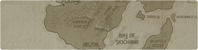 Related Geography: Bay of siochana, Karralai forest, Koura grasslands, Sunglai mountains