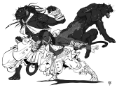 Due to the Jadyari's lack of sophisticated language and reputation for animalistic behavior, some question whether or not the Jadyari should be counted among the rational races. The Jadyari are reclusive and territorial, leading to frequent conflict and misunderstandings between other races. The Jadyari have feline facial features, large fangs, thick fur, and crystaline ice protruding from their backs along the spinal column