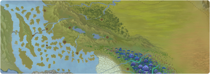 This remote monastery is perched high in the Faulan mountains, far above the coastal populations of Fiadh. Sakuran is connected to Fiadh by way of a somewhat treacherous path that splits off from the Faulan Pass at the ruins of the Hitan Bulwark. Winding through the mountains, the path eventually crosses the famous hanging bridges, a serious of seven long rope bridges that must be crossed in order to enter the monastery