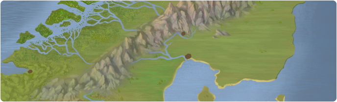 Runs from the Sunglai mountains of the northern isle of Inis to the Bay of siochana